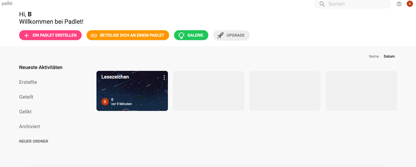 Im nächsten Schritt kann dann selbst ein Padlet erstellt werden oder man tritt über einen Link einem bei.